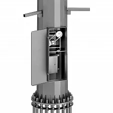 - Мачты освещения с мобильной короной. Они снабжаются площадкой, которую можно поднимать и опускать для обслуживания или ремонта установленных прожекторов.